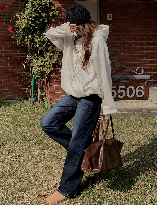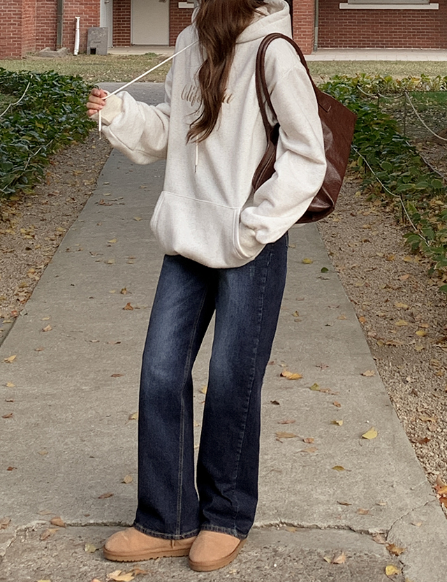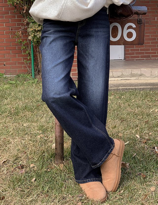 플레르 加絨 寬 直筒 牛仔 褲 84931