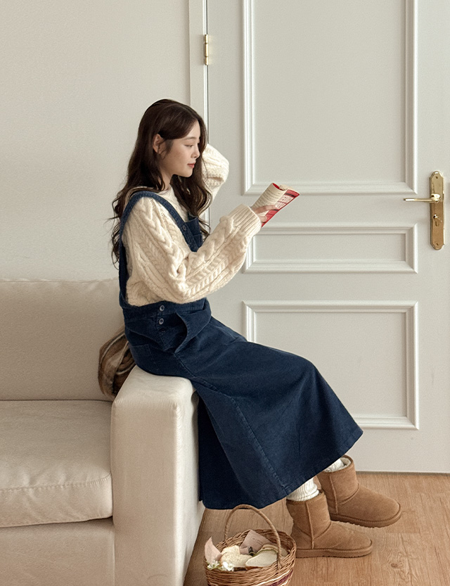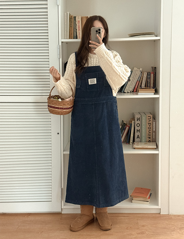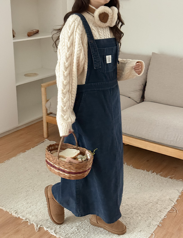 카이티 피그먼트 燈芯絨 背帶褲 長款 洋裝 84729
