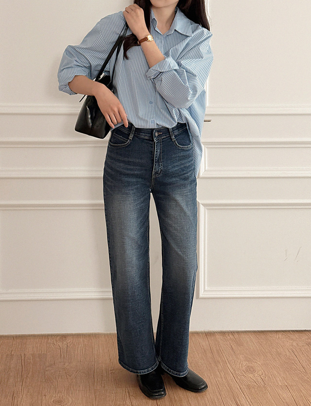 덴므 寬鬆 펜던트 基本款 條紋 襯衫 84861