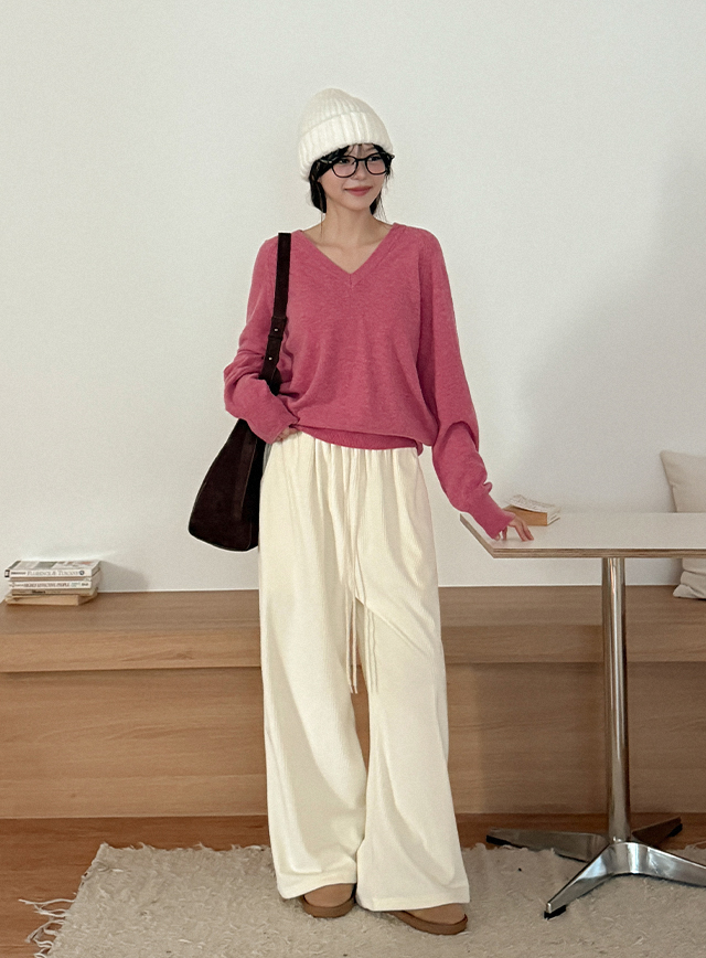 베노 羅紋 絨毛 속기모 寬褲 84904