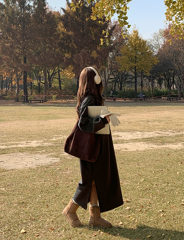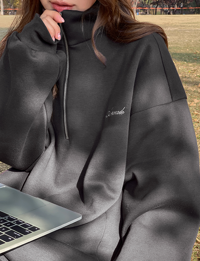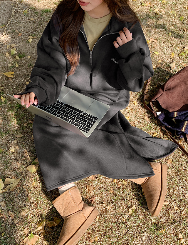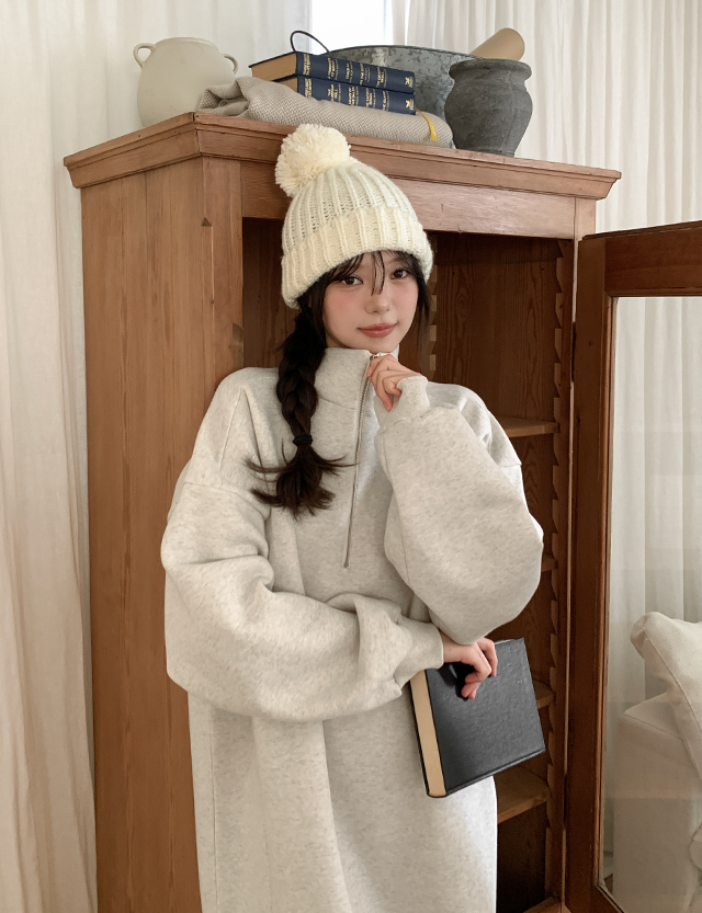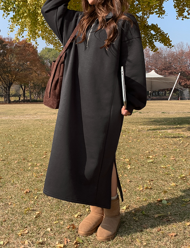 따뜻하지 半拉鏈 加絨 寬鬆 長款 洋裝 85054