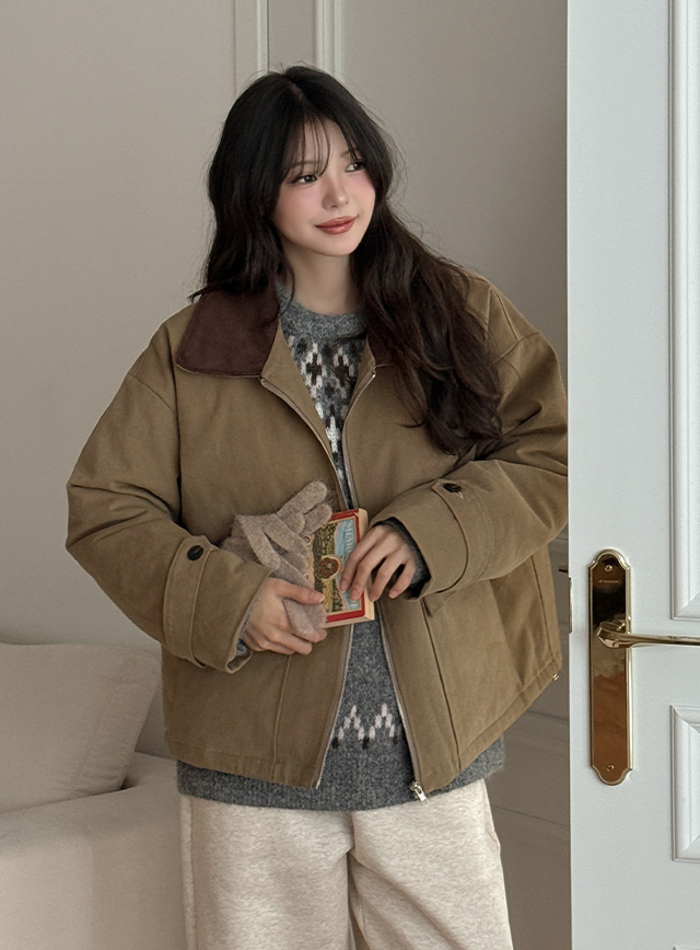 보이딘 配色 領口 鋪棉 拉鏈外套 (3唡) 84787