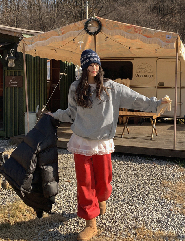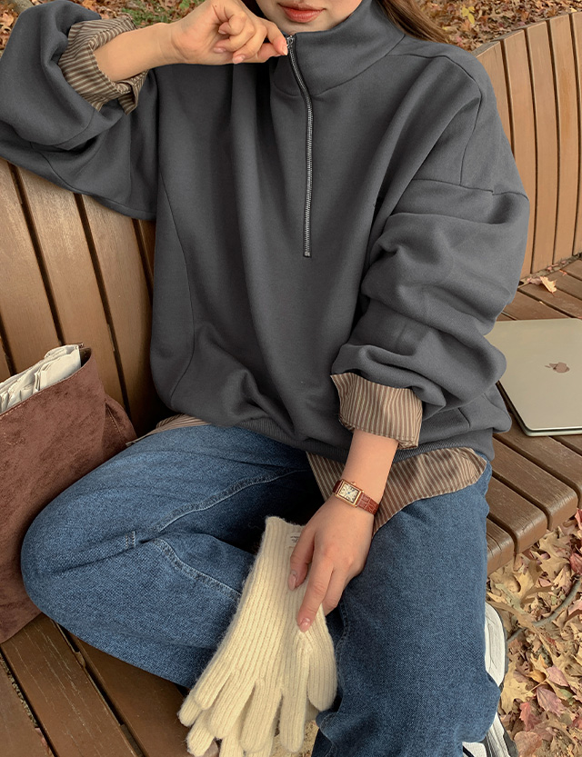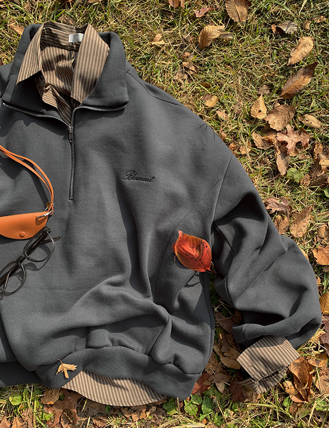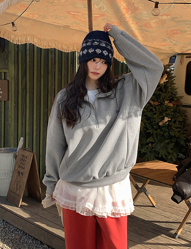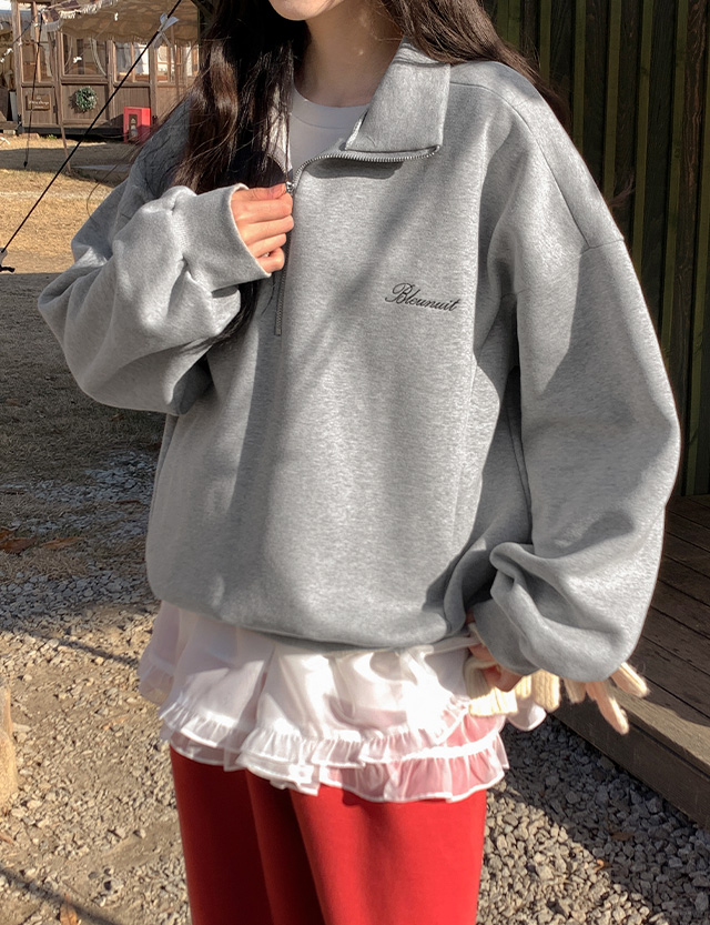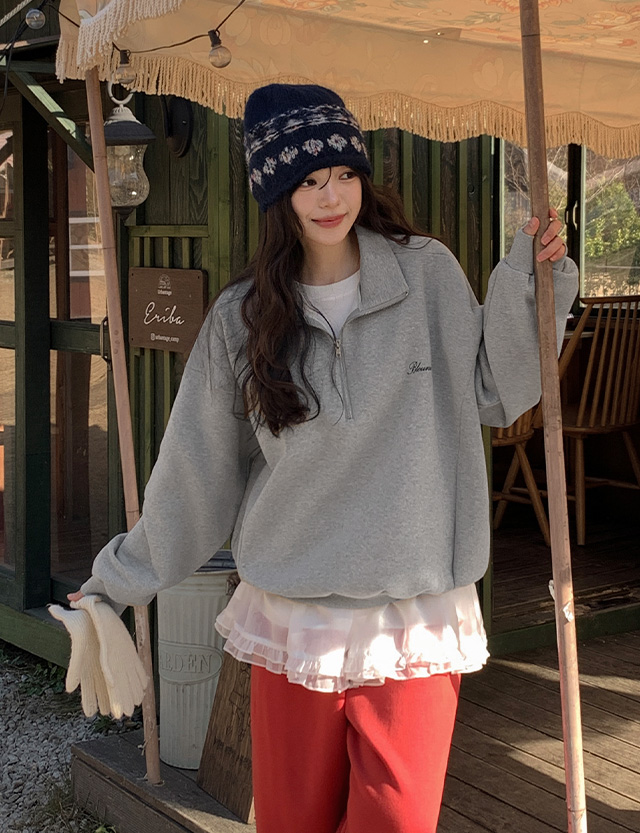 블루닛 刺繡 半拉鏈 加絨 寬鬆 運動衫 85066