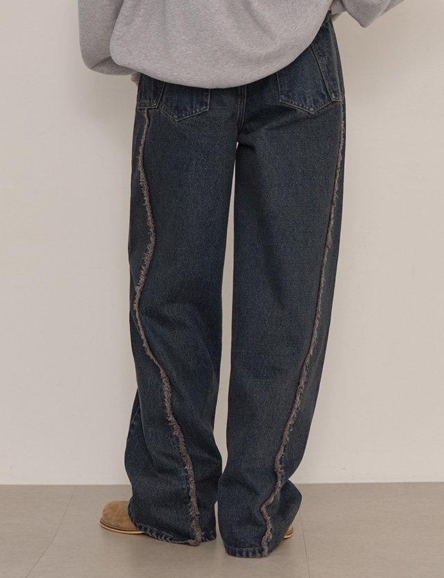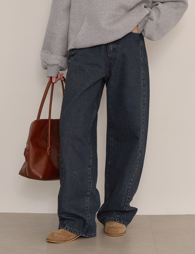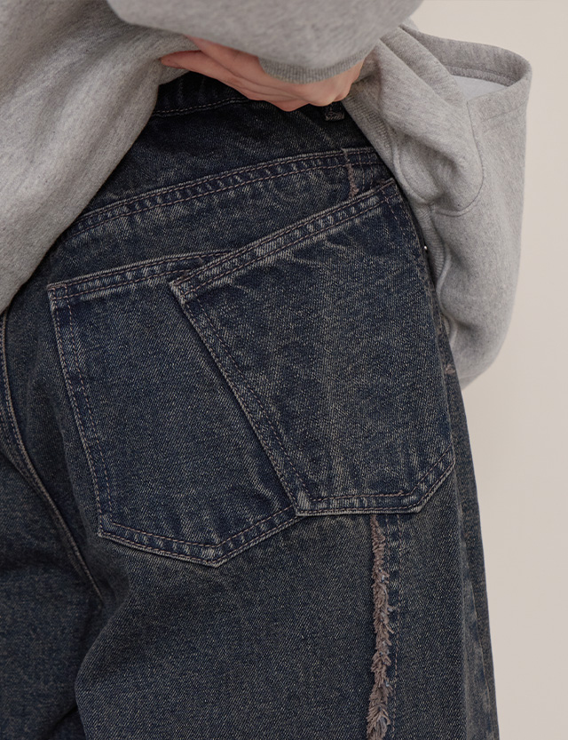 페이티 鬆緊腰 雙 포켓 寬 牛仔 褲 85002
