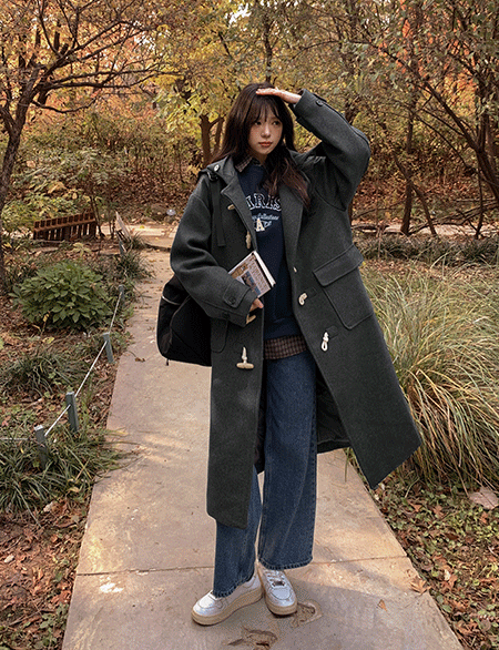 러스 衛衣 더플 長款 呢子大衣 85107