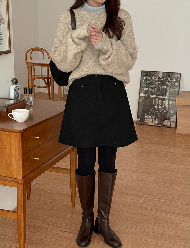 갓벽핏 翻毛皮 A線條 鬆緊腰 裙 85039