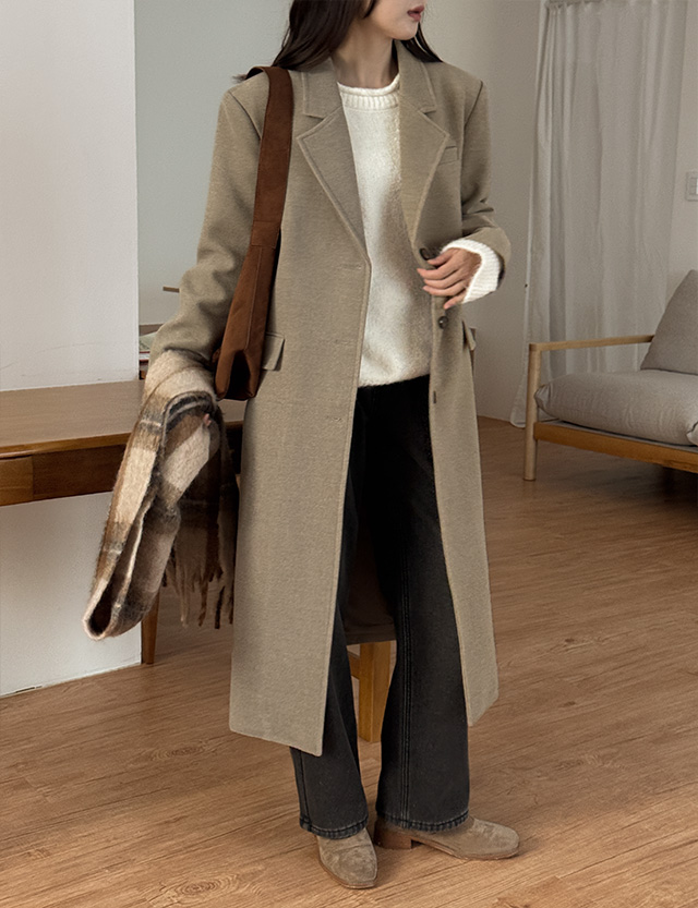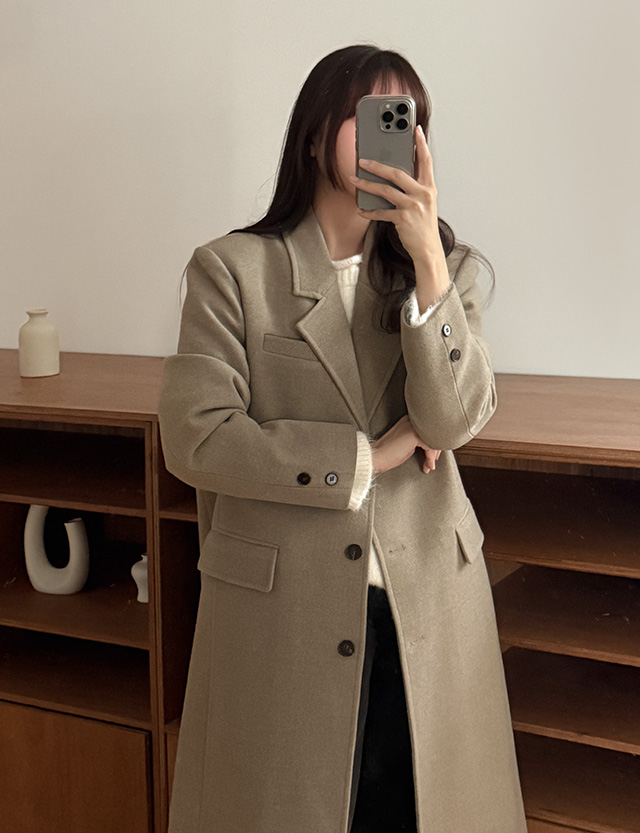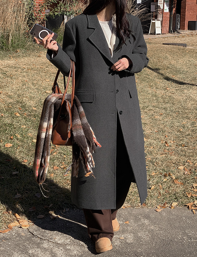 모더닛 寬鬆 單身 長款 呢子大衣 84978