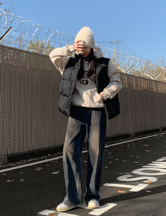 벨벳터치 속기모 鬆緊腰 세미와이드 牛仔 褲 85089