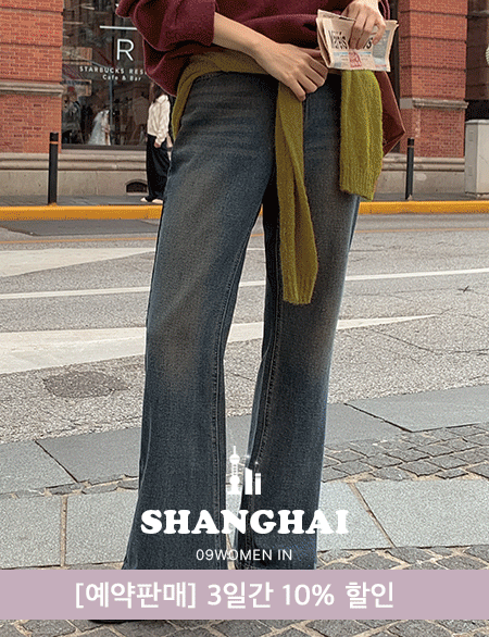 허넷 鬆緊腰 寬 喇叭 牛仔 褲 84570