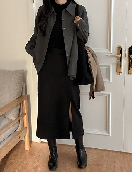 모더닝 鬆緊腰 슬릿 羊毛 長裙 85135
