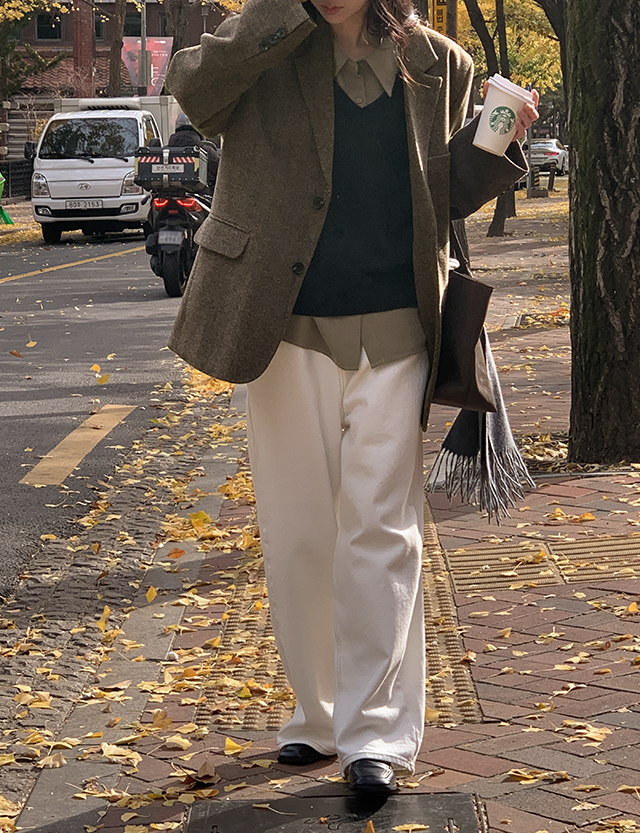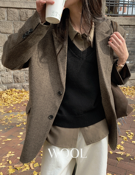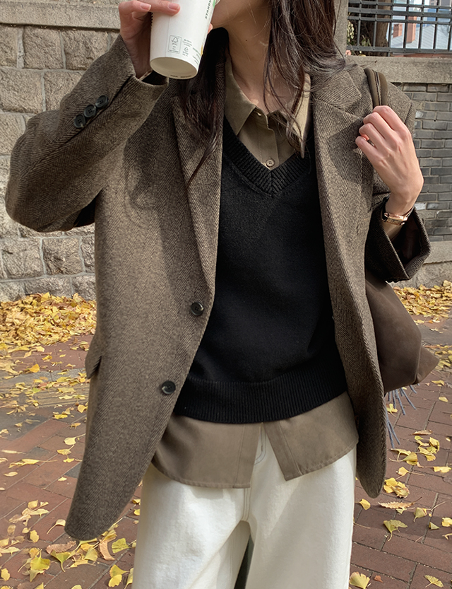 드베링 寬鬆 헤링본 羊毛 單身 外套 85136