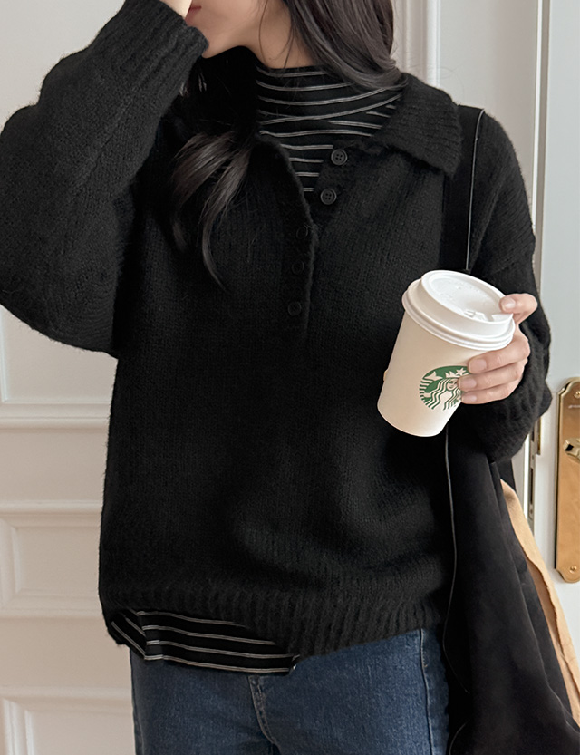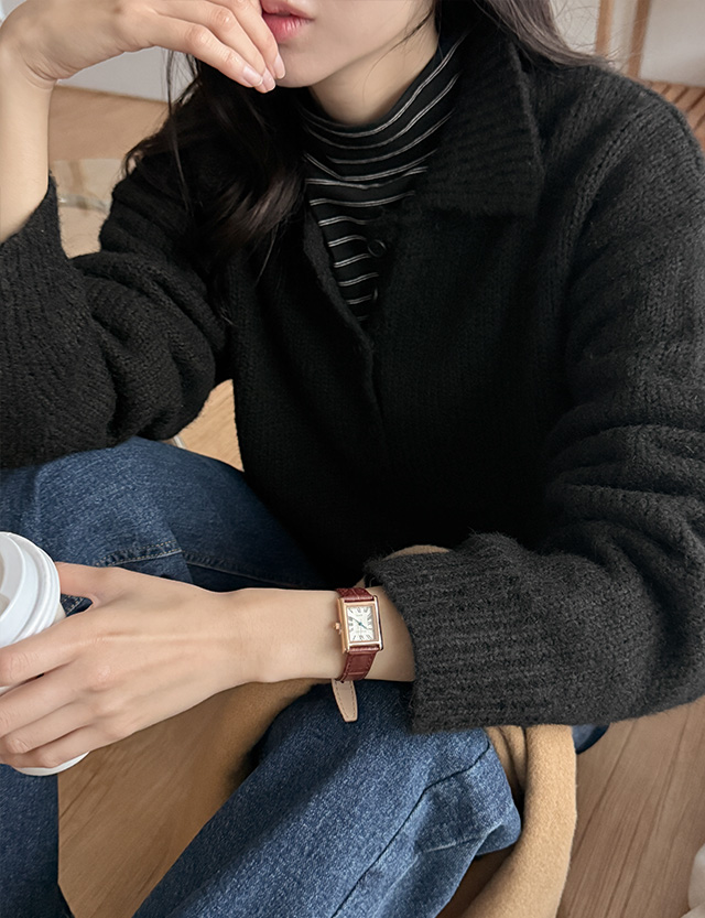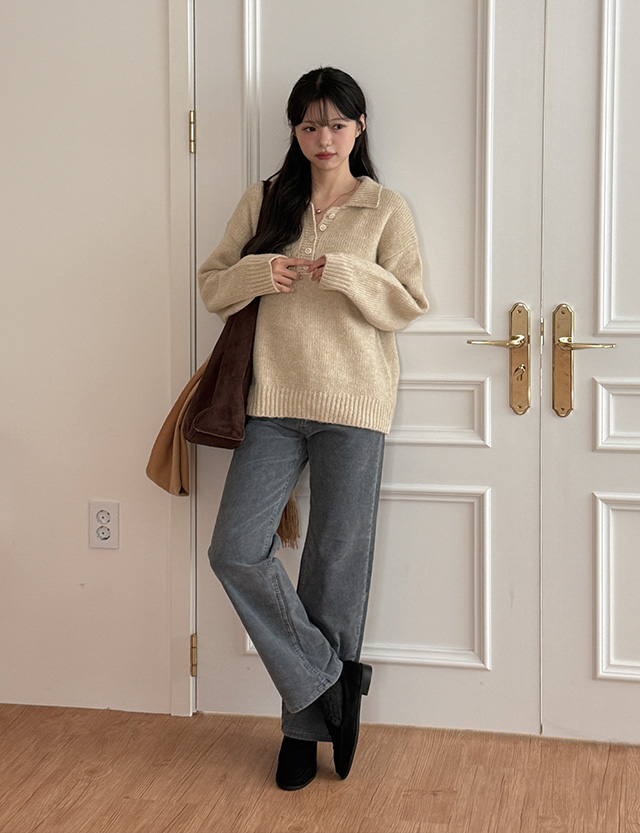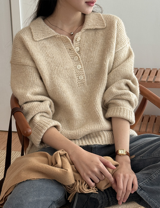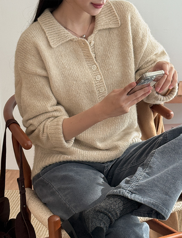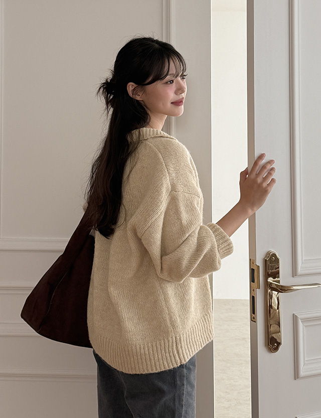 달링 반오픈 羊毛 領口 寬鬆 針織 84895