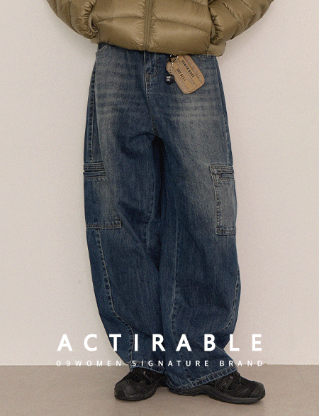기본템 논페이드 鬆緊腰 牛仔 寬褲 84782