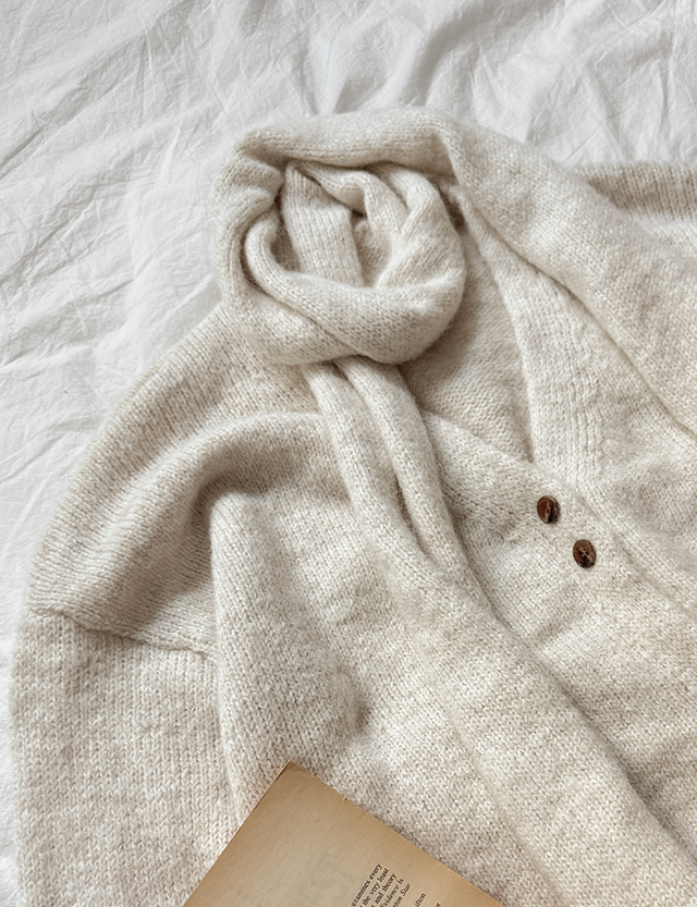 [목도리 套裝] 러비덥 V領 寬鬆 羊毛 開襟外套 85090