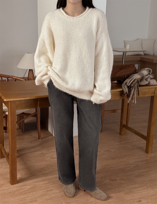 마이딘 헤어리 寬鬆 圓領 針織 84984