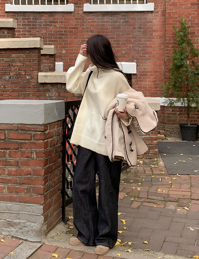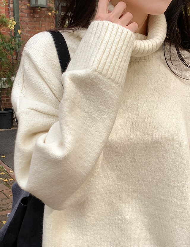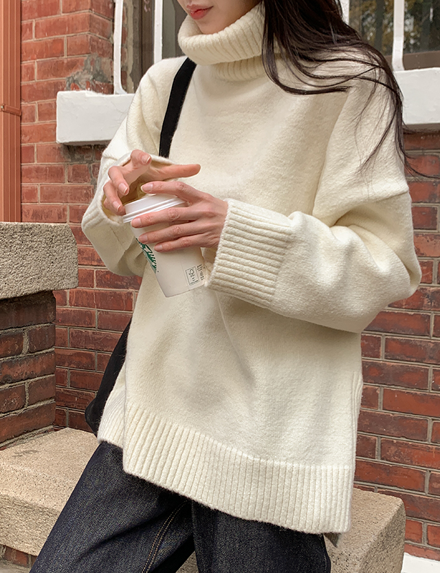 왈라드 寬鬆 不規則 포근 高領 針織 85130