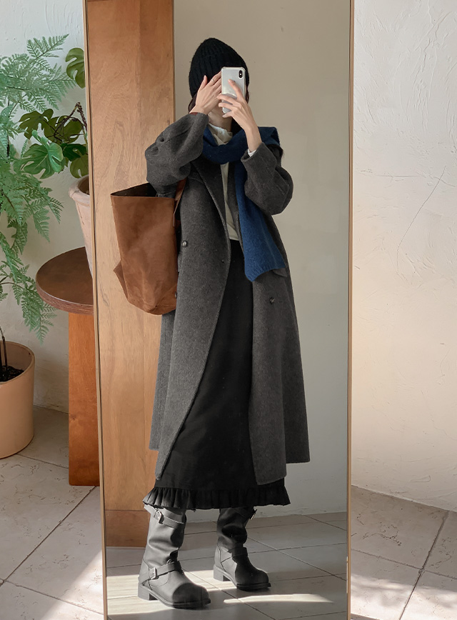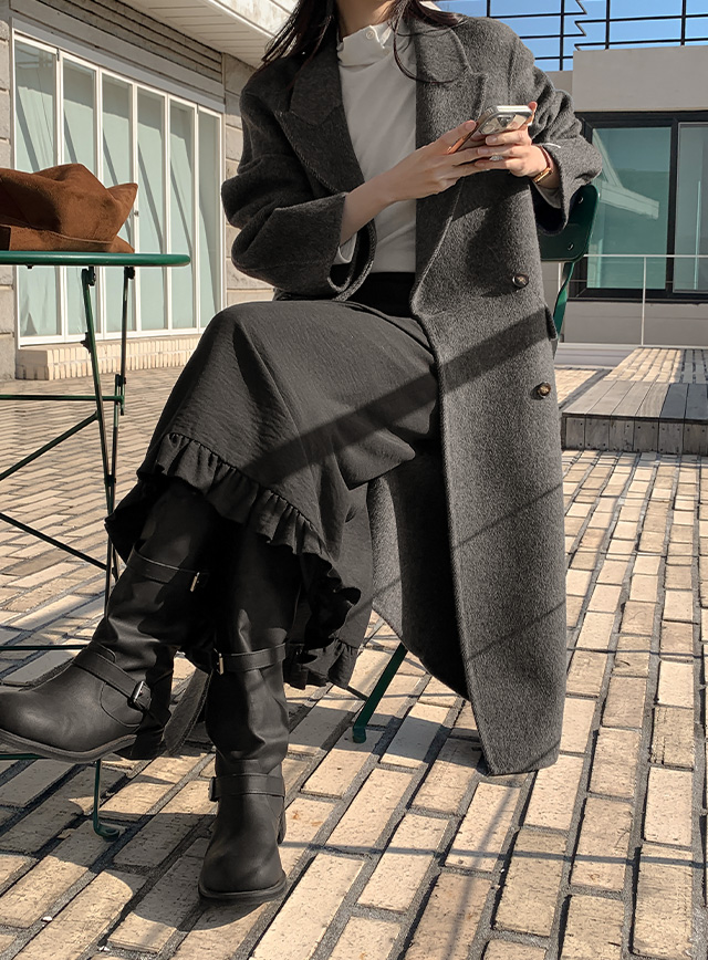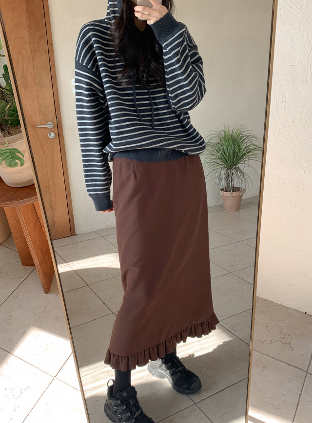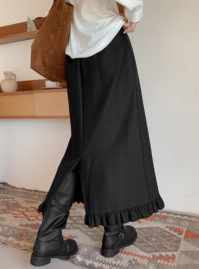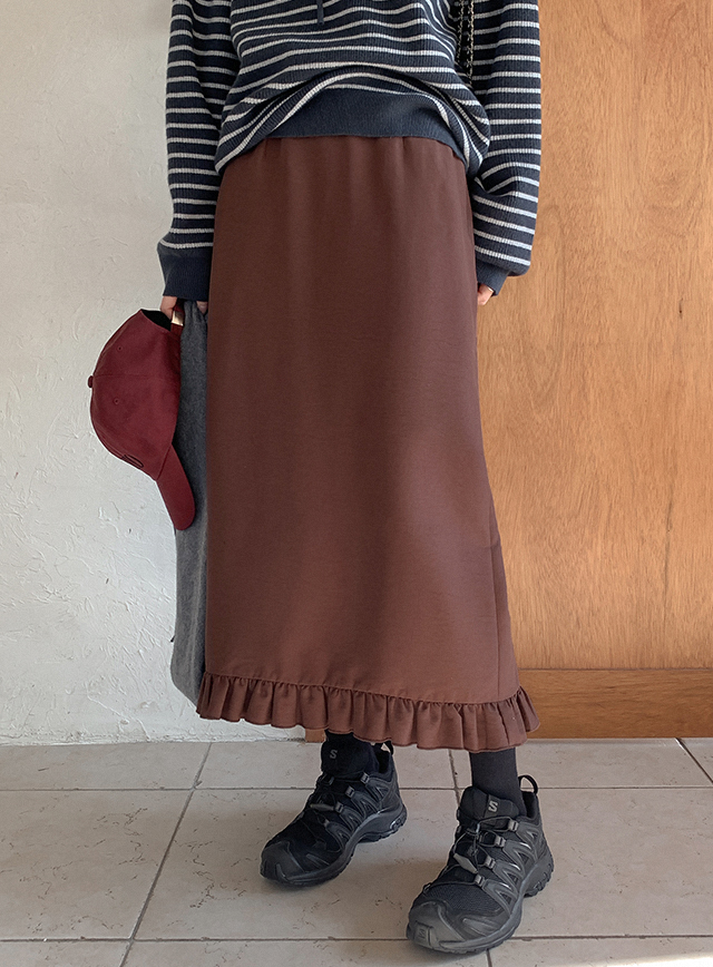 파우더리 褶皺 鬆緊腰 長裙 85198