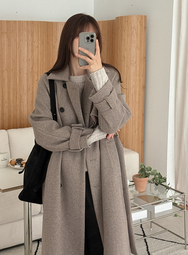 케니 羊毛 블렌딩 히든 風衣 長款 呢子大衣 84994