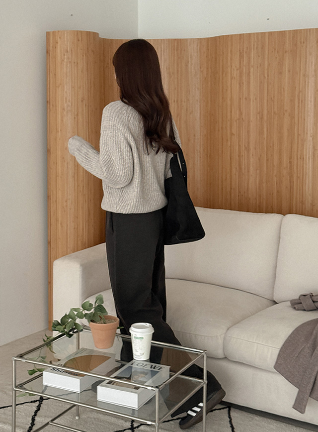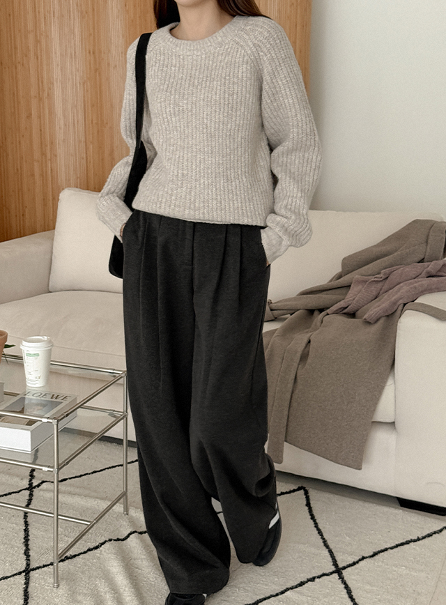 [3가지기장] 도톰따뜻 打摺 비죠 寬 加絨 休閒長褲 84996
