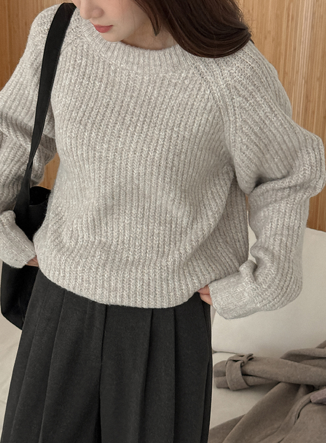 포리린 하찌 羊毛 圓領 插肩 針織 84995