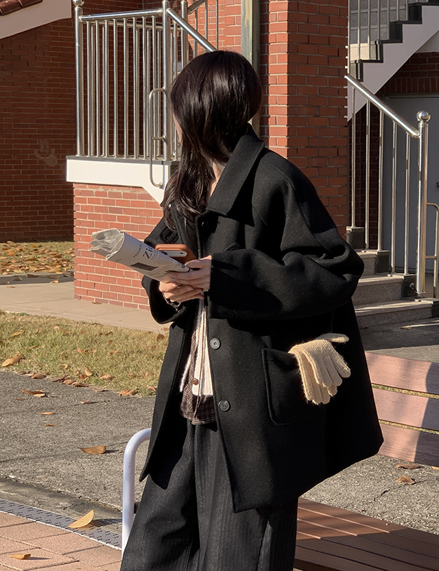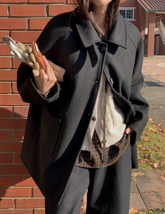[領口 탈착 가능] 페리프 2WAY 비죠 短版 呢子大衣 85095