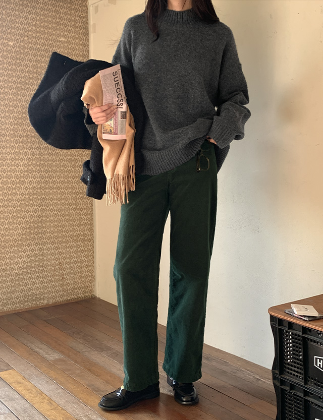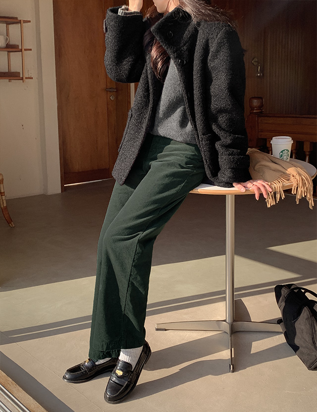 모렌 벨로아 加絨 鬆緊腰 直筒 褲 85212