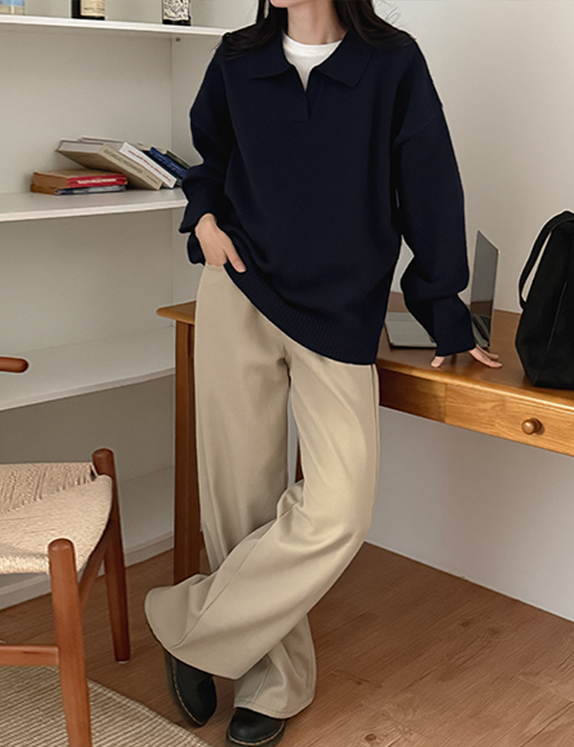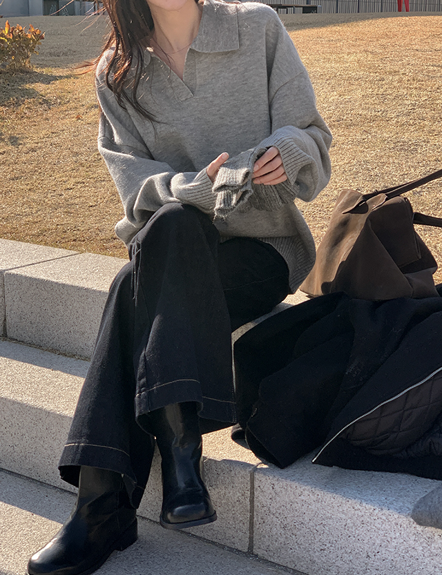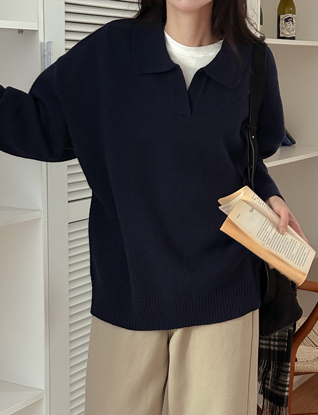 데일리템 반오픈 領口 寬鬆 針織 85126