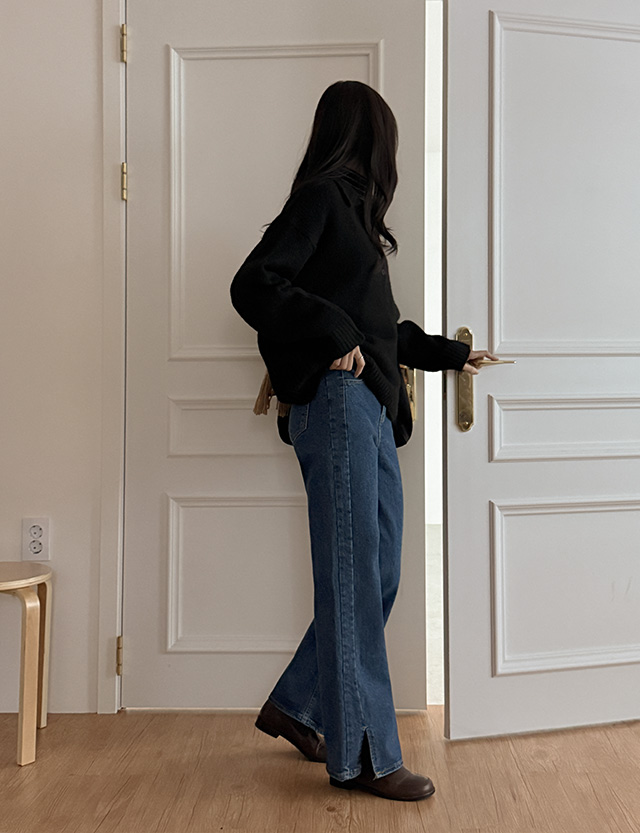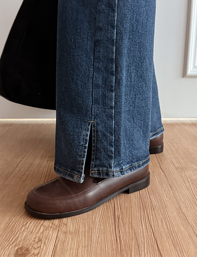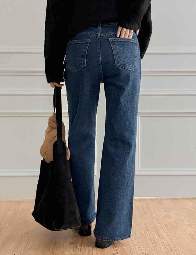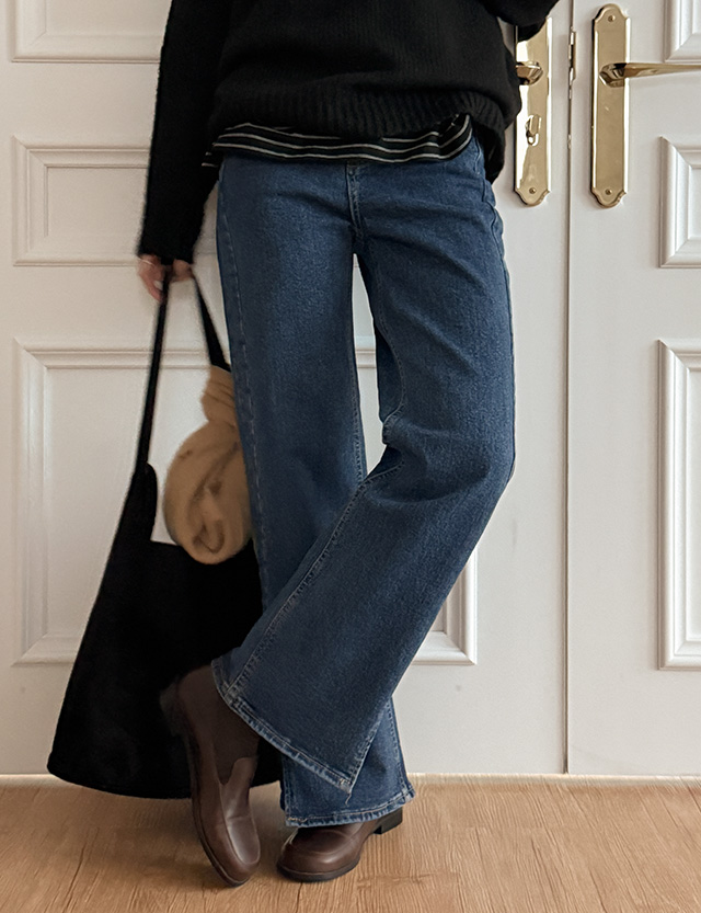 더핀 슬릿 스트레이트 加絨 鬆緊腰 牛仔褲 84958