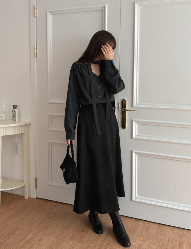 탱탱스판 翻毛皮 鬆緊腰 長裙 85182