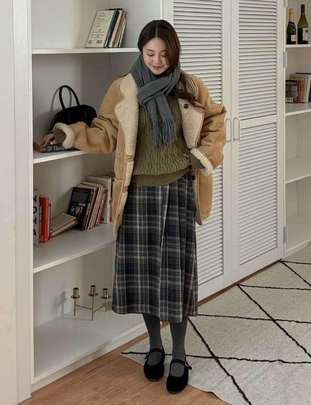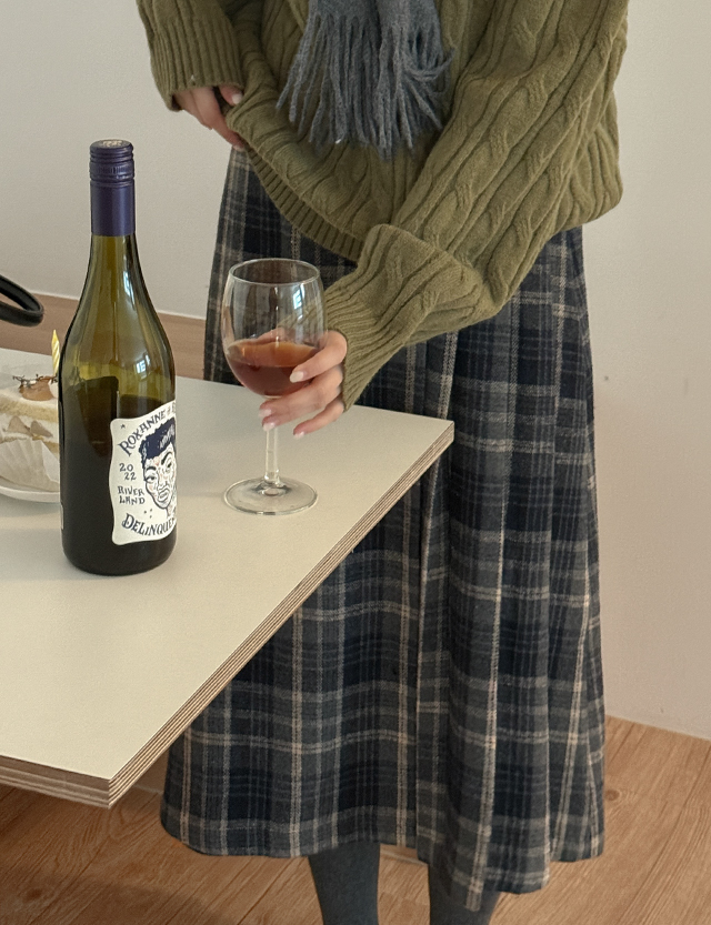 더에디 鬆緊腰 格紋 兩片式 裙 84981