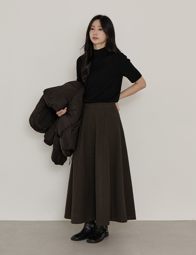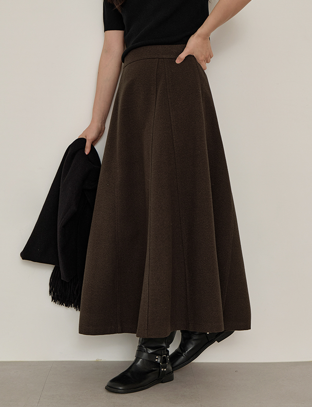 柔絲 羊毛 波浪群/喇叭裙 鬆緊腰 長裙 85223