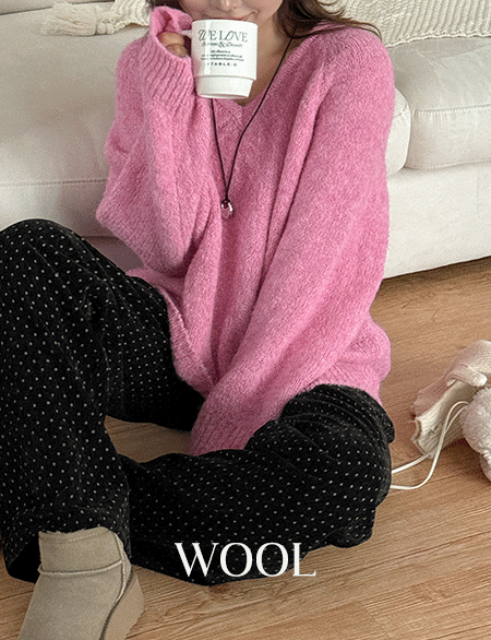 마일든 寬鬆 앙고라 V領 羊毛 針織 85264