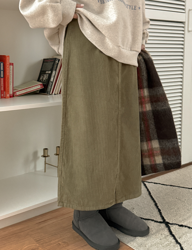 츄브 顏色 燈芯絨 鬆緊腰 長裙 85242