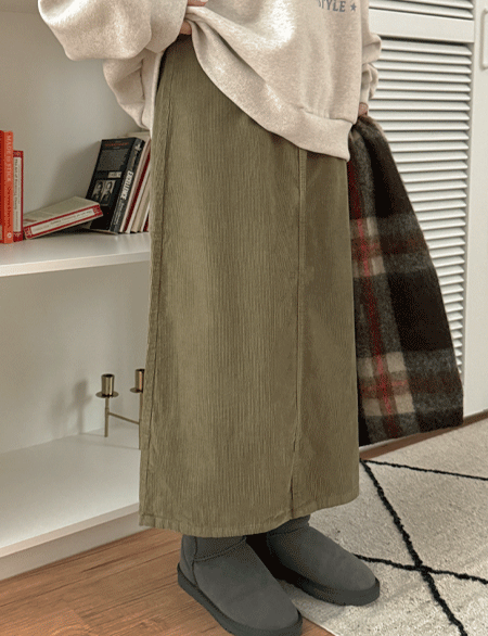 츄브 顏色 燈芯絨 鬆緊腰 長裙 85242