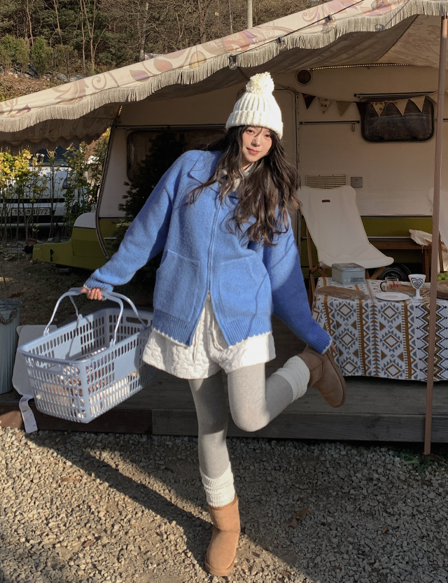 하라이 寬鬆 雪花 羊毛 針織 拉鍊衛衣 85019