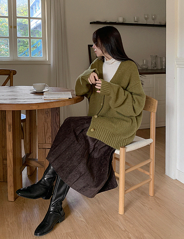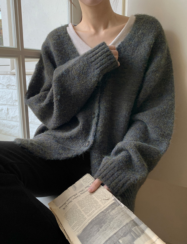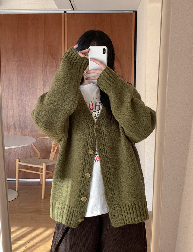 러비르 寬鬆 V領 針織 開襟外套 85144