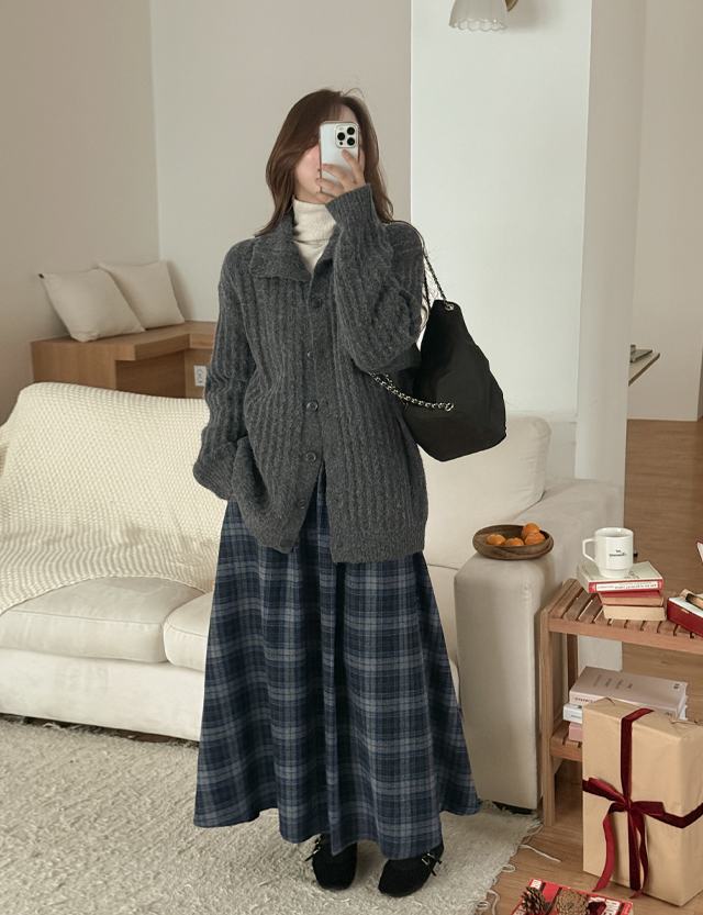 엔모어 羊毛 格紋 鬆緊腰 裙 85254