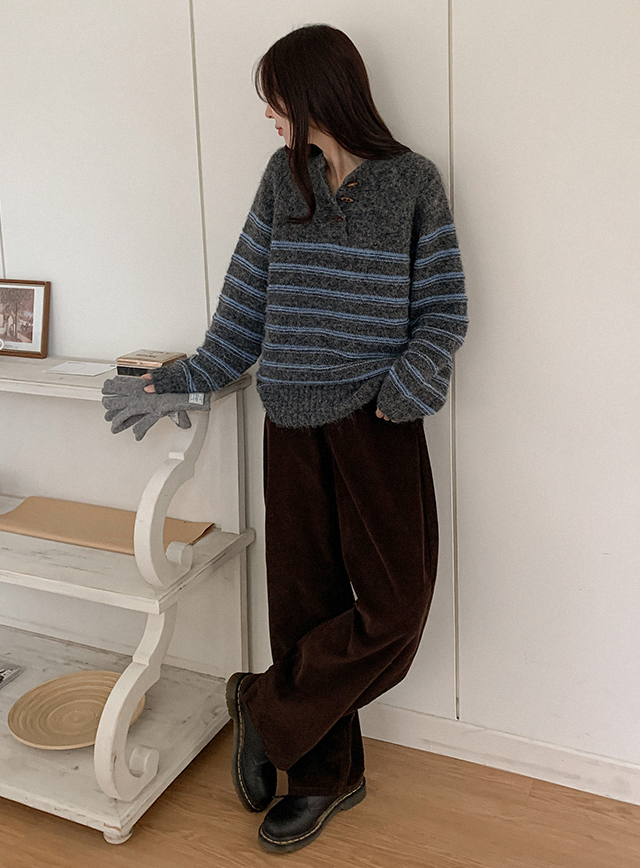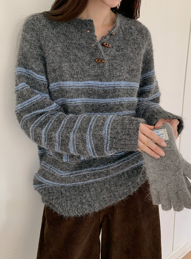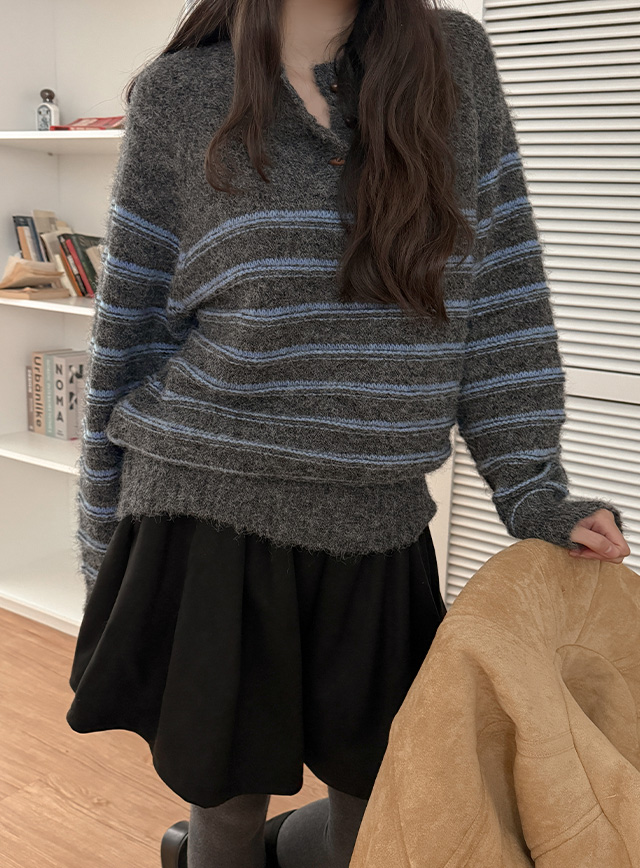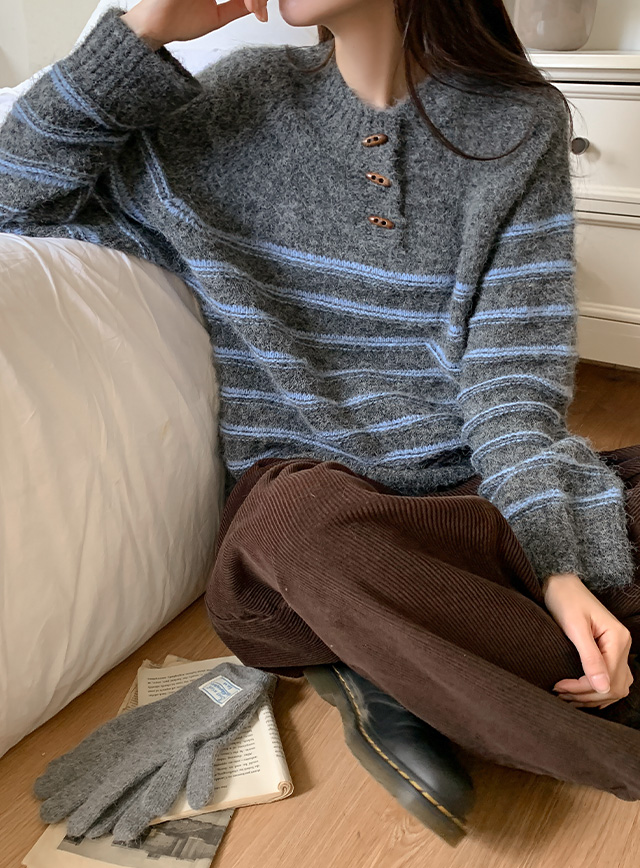 코코미 條紋 寬鬆 羊毛 針織 85163