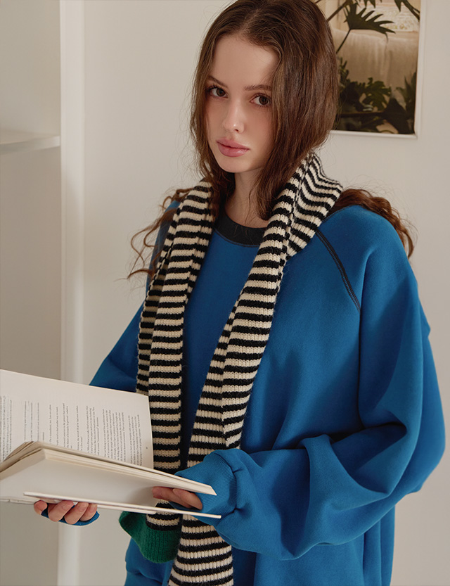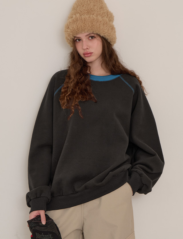 클라우디 配色 寬鬆 加絨 運動衫 85323
