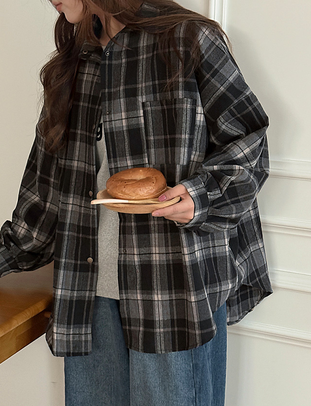 [09초이스] 라잇 寬鬆 아방 格紋 襯衫 85255