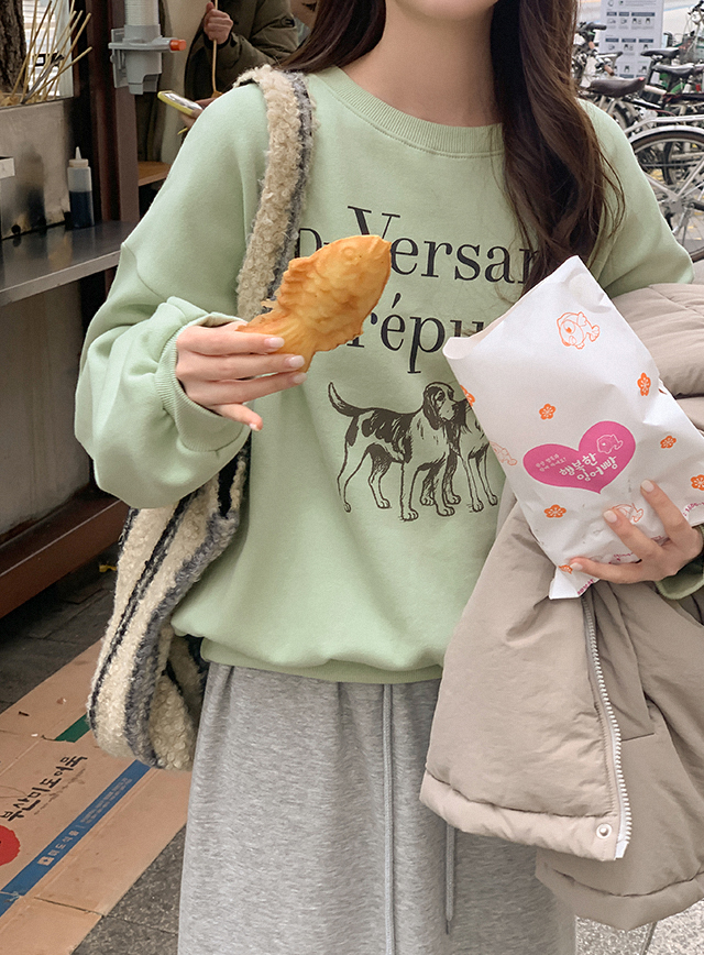 [아방핏]코지퍼피 寬鬆 加絨 印花 運動衫 85232