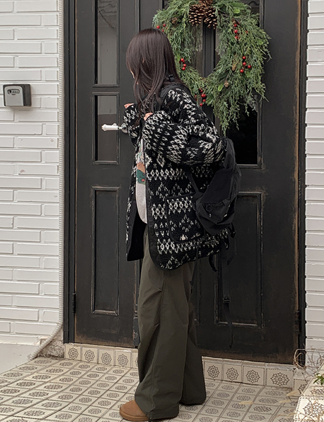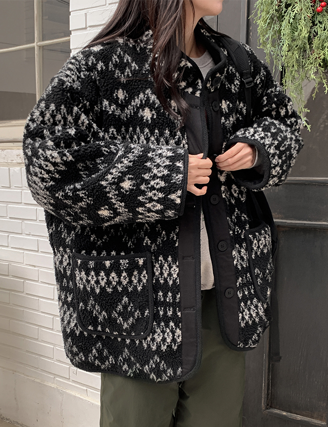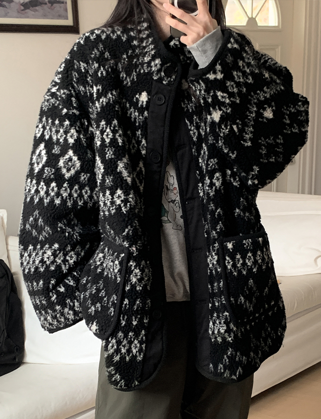 [남여공용] 핏타 寬鬆 北歐 圖案 拉鏈外套 85340