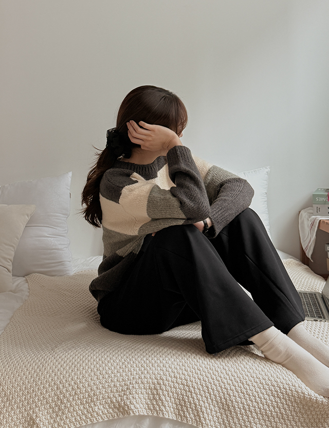 [2가지기장] 매일 쫀쫀 밍크기모 鬆緊腰 세미寬褲 85432