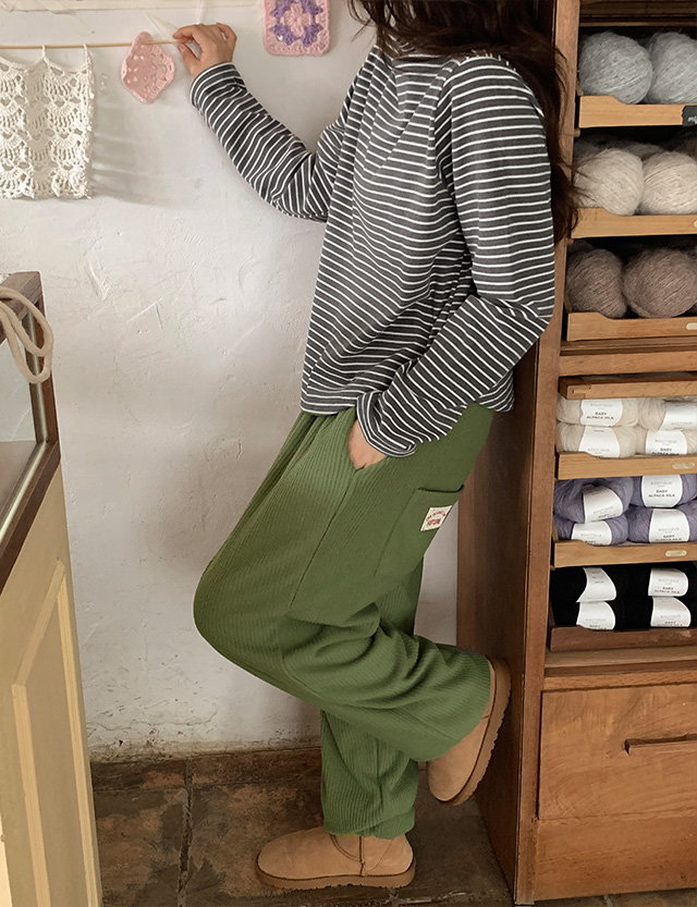 콤딘스 鬆緊腰 포켓나염 加絨 燈芯絨 束腳褲 85473