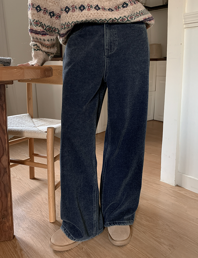 베르벳 鬆緊腰 寬 絲絨 加絨 牛仔 褲 85284