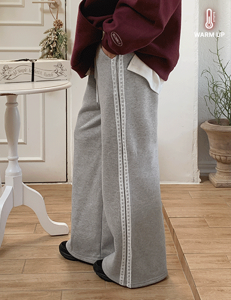 멜캉 鬆緊腰 蕾絲 加絨 寬褲 85479