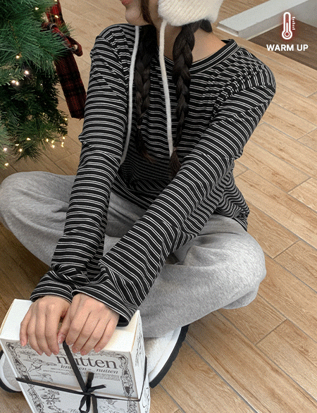 리쉬츠 條紋 加絨 圓領 長袖 T恤 85493