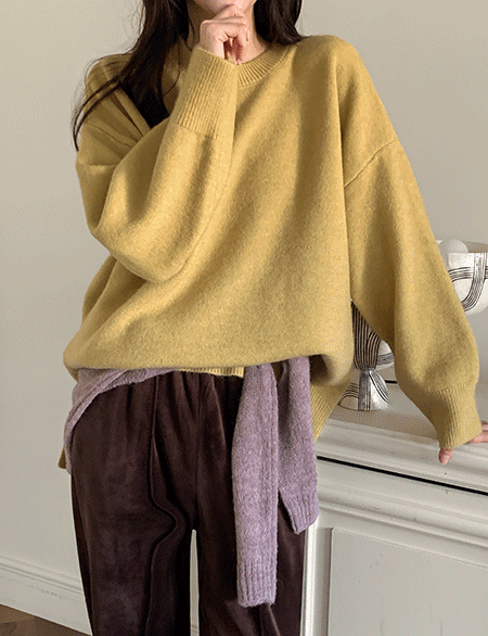모가트 顏色 寬鬆 圓領 슬릿 針織 85424