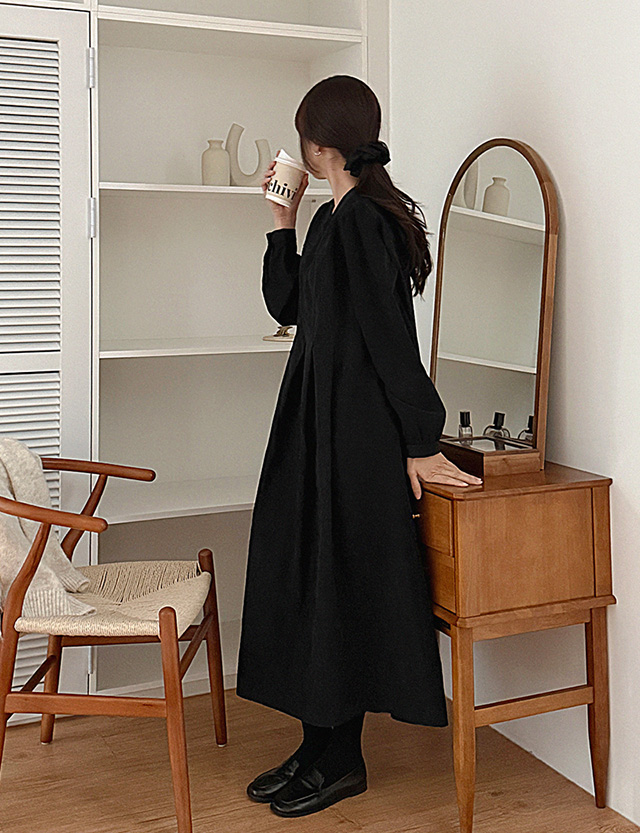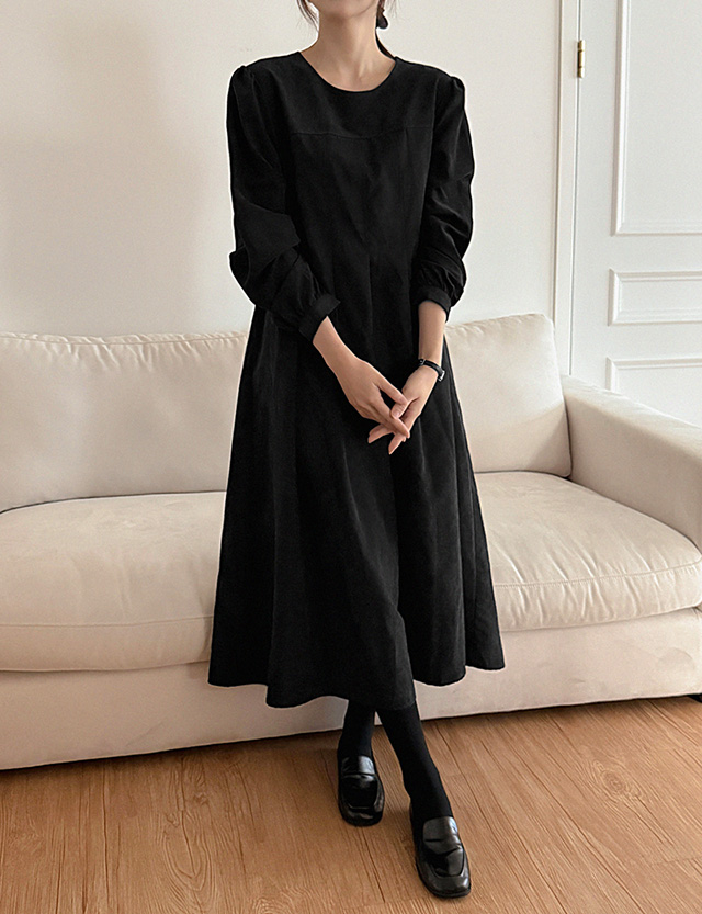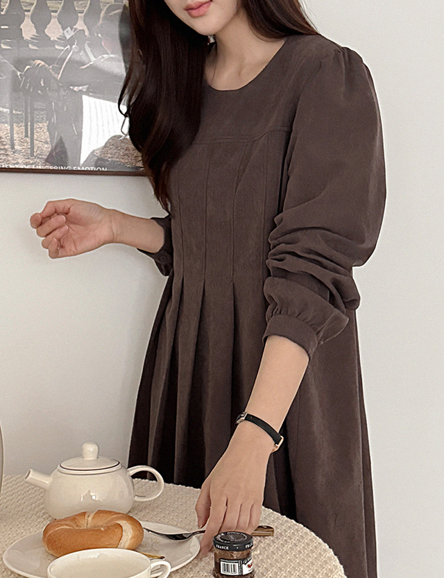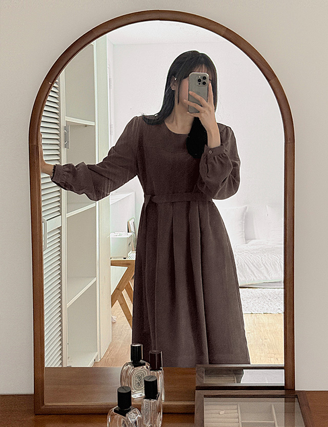 마조리나 圓領 턱 桃色 長款 洋裝 85429