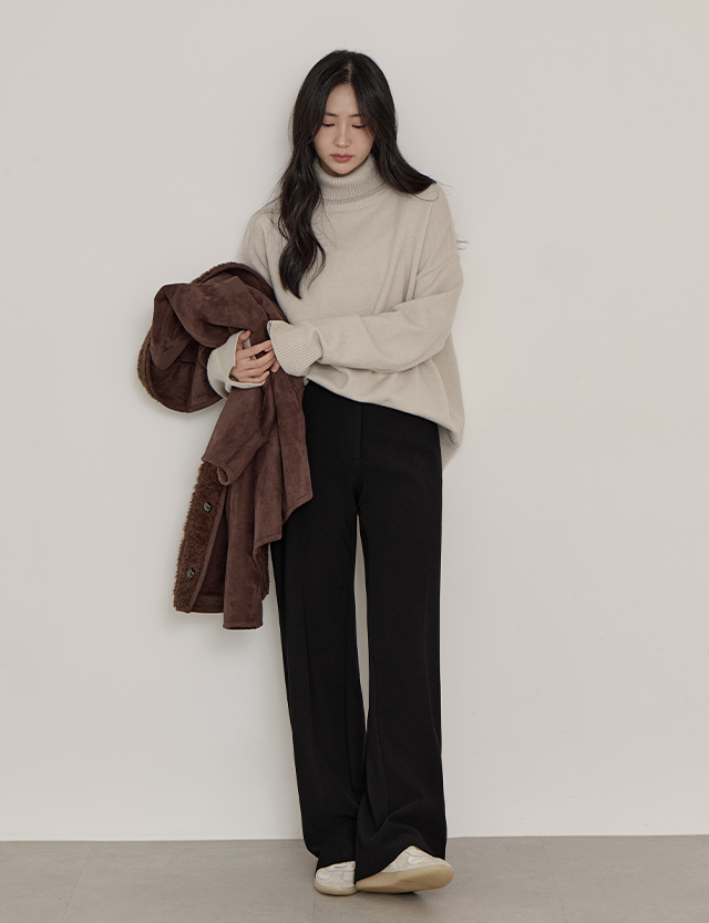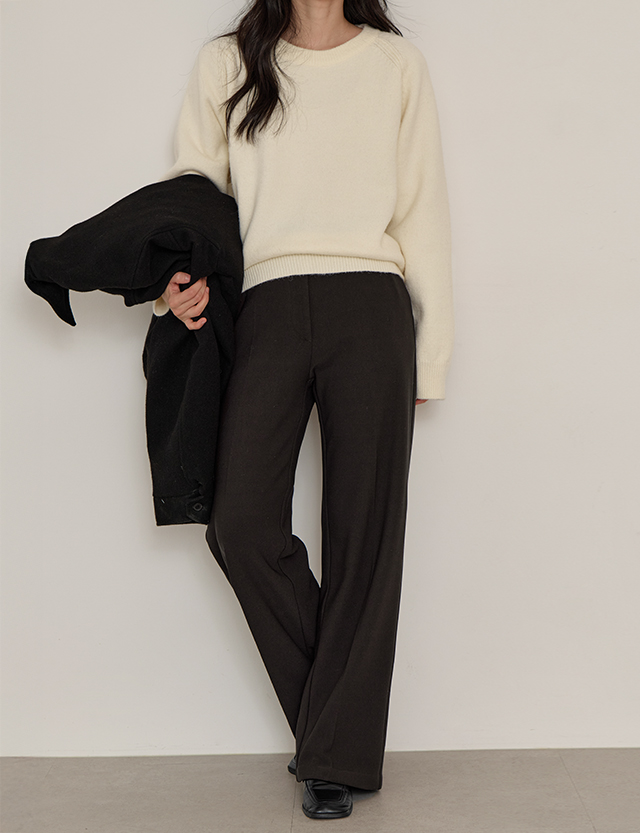 말랑스판 絨毛 加絨 속밴딩 寬 休閒長褲 85221
